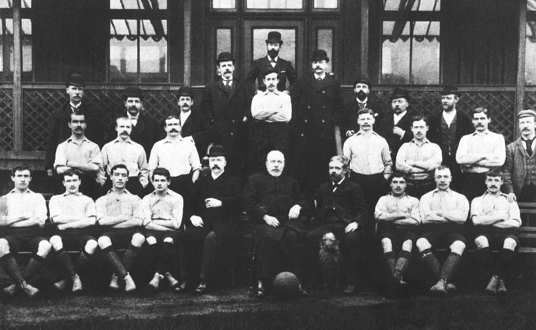 The Liverpool team in the backyard of the Sandon in 1893.