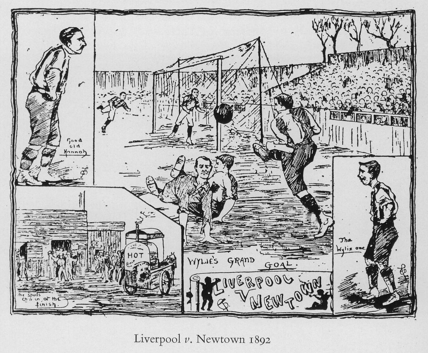 A drawing of Liverpool's win vs. Newtown featuring one of Wyllie's goals. (Click on the image for a bigger version)