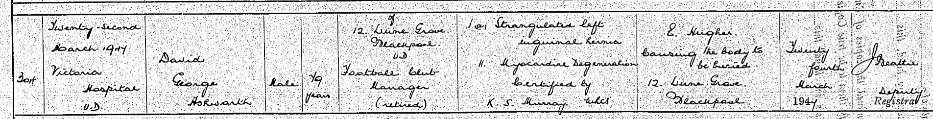 DGA died 22 March 1947, buried at Carleton Cemetery and Crematorium, Blackpool, Blackpool.