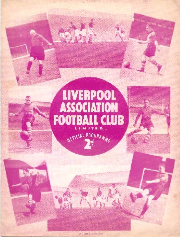 One of these three Football League matches was the opening home fixture of the season played on August 30th against Middlesbrough. The programme issued by the club consists of 20 large pages packed with articles and information. The cover was the same as used for the previous season, made up of a number of 'action' photographs of Liverpool players. This was very unusual for that pre-war period, but showed how innovative the club's programme designers were before war interrupted their progress.