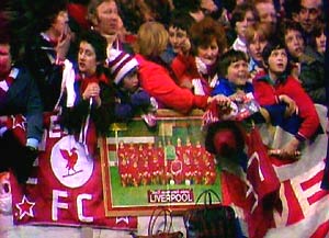 Instead of inspiring the Reds onto greater things this seemed to gel the St Etienne players together and they began to ask questions about the Reds defence. The French Champions had gained the initiative and began attacking in waves – the crowd where getting a bit nervy as Ray Clemence saved shot after shot. "Liverpool – Liverpool - Liverpool" urged the Kop as the Reds began to attack the French. The half-time whistle blew [not that you could hear it] and the players ran off for a breather and some advice and encouragement from Bob and the backroom boys. Ivan Curkovic ran out onto the Anfield pitch and towards the Spion Kop, he received a hero’s welcome as everybody clapped him into the Kop goal. We watched the St Etienne players follow him into there half – they seemed to be in awe of the Kop – it was that special at times.
