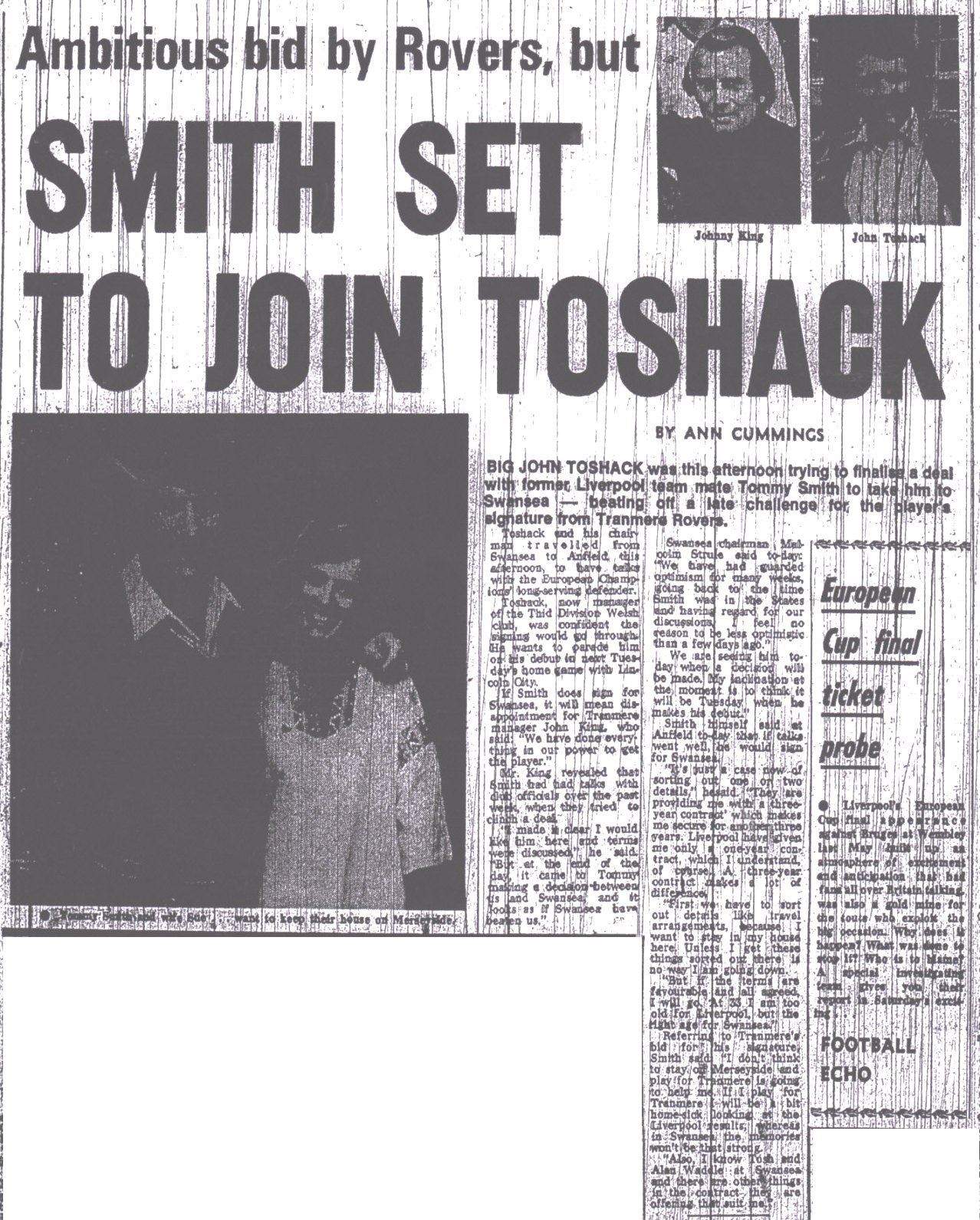 Smith set to join Toshack
