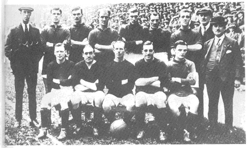At the right hand side of the Rice Lane terraces the swaying of the crowd was so severe that to relieve the pressure, a large number of fans were allowed inside the barrier. So far the play had been keen, good and fast, but as yet neither side really settled down to a rhythm. The best moment came in the next minute when a nice solo run by Johnson enabled him to put Chambers into possession at a favourable moment and the inside man drove in a terrific shot that struck the outside netting. Chedgzoy was applauded by both sets of fans for some capital play although McKinlay was alert enough to utilise the effort. Sheldon came into the picture at this moment and his pass to the left was with a good idea, although it brought nothing tangible.
