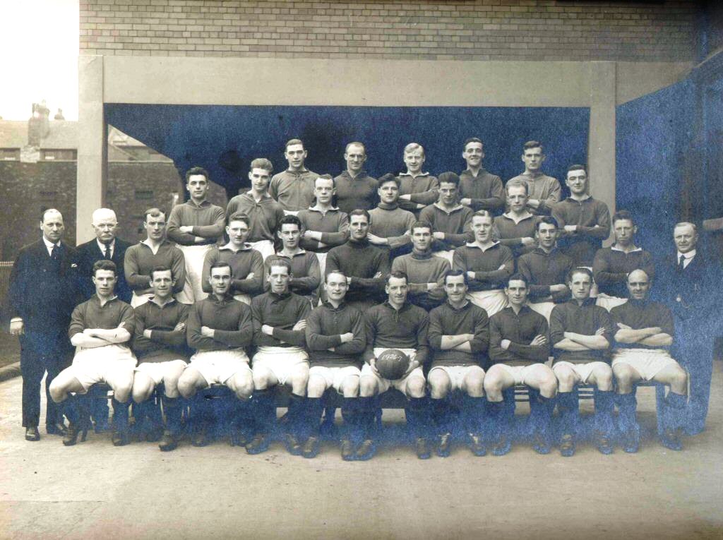 3rd row: George Patterson (Secretary), William Connell (Trainer), David Pratt, Tom Scott, Patrick McDade, Arthur Riley, Elisha Scott, William Cockburn, Dick Edmed, Dick Forshaw, Matt McQueen (Manager)