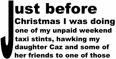 trendy bars in town. Now the format these little excursions usually take is for me to sit at the wheel, keep my head down just about level with the top of the dashboard and my mouth clamped firmly shut with the invaluable aid of some Wrigley's Doublemint Gum. Meanwhile, our Caz and her garrulous entourage will normally sit in the back and proceed to talk the rear wheel off the bus in front.
