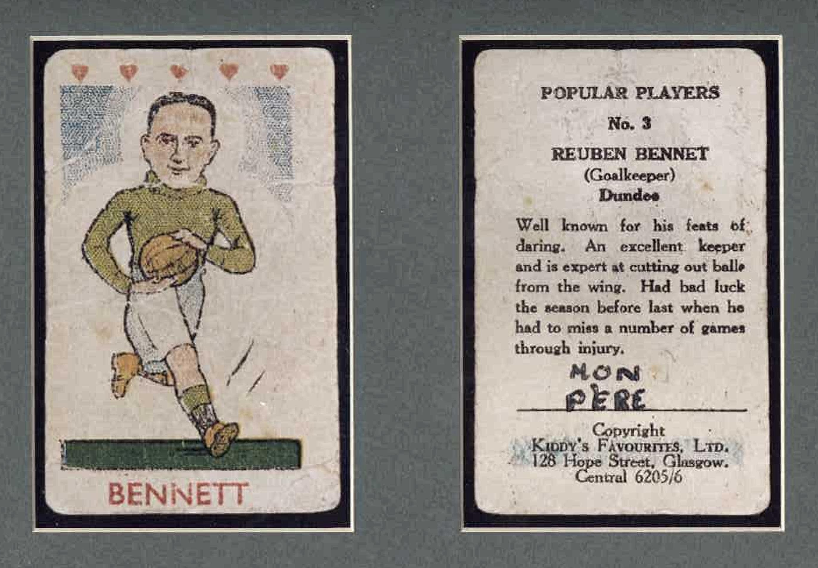 Apart from his talents and abilities as a player, coach or manager, Reuben Bennett was also a storyteller. In this he was not alone, because most footballers no matter of what level all have stories to tell. But Reuben was a football professional for over 50 years, plus he spent six years of war in the Army. So his fund of tales and anecdotes was gleaned from a rich harvest of experiences.