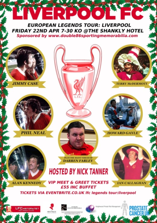 Ex Reds Defender and Host Nick Tanner has provided LFChistory.net with 2 pairs of GOLDEN TICKETS for the European Legends Tour at the unique venue, The Shankly Hotel in Liverpool, on the 22nd April to give away.