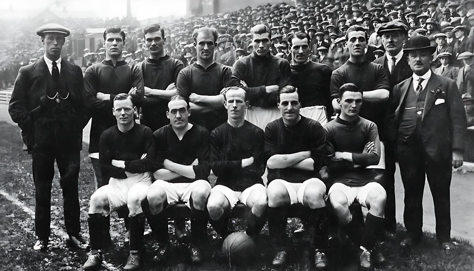 Front row: Dave Ashworth (Manager), Harry Beadles, Bill Lacey, Ted Parry, Ephraim Longworth, Donald McKinlay, Tommy Lucas, ?, Fred Hopkin, George Patterson (Secretary).