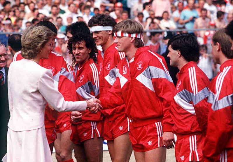 Gary Gillespie and Nigel Spackman (shaking hands with Princess Diana) both had head wounds in the FA Cup final in 1988