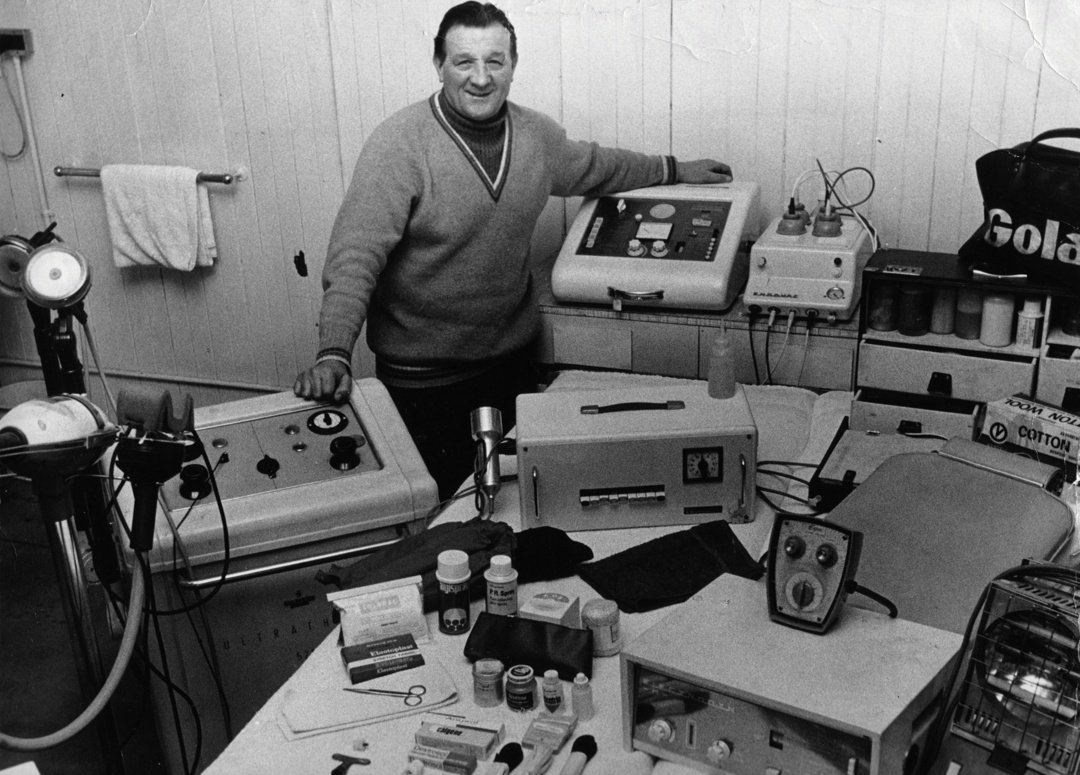 I often look back to that article in the Liverpool Echo the headline "It’s Not Just A Magic Sponge", accompanied by a picture of trainer Bob Paisley in his Anfield treatment room with all the electrical equipment they used, from shortwave, ultrasound heat lamp and hot water bottles. The trainers would also rely on the contents of those bright yellow Gola trainers bags and the items of the medical skip they took to every game.