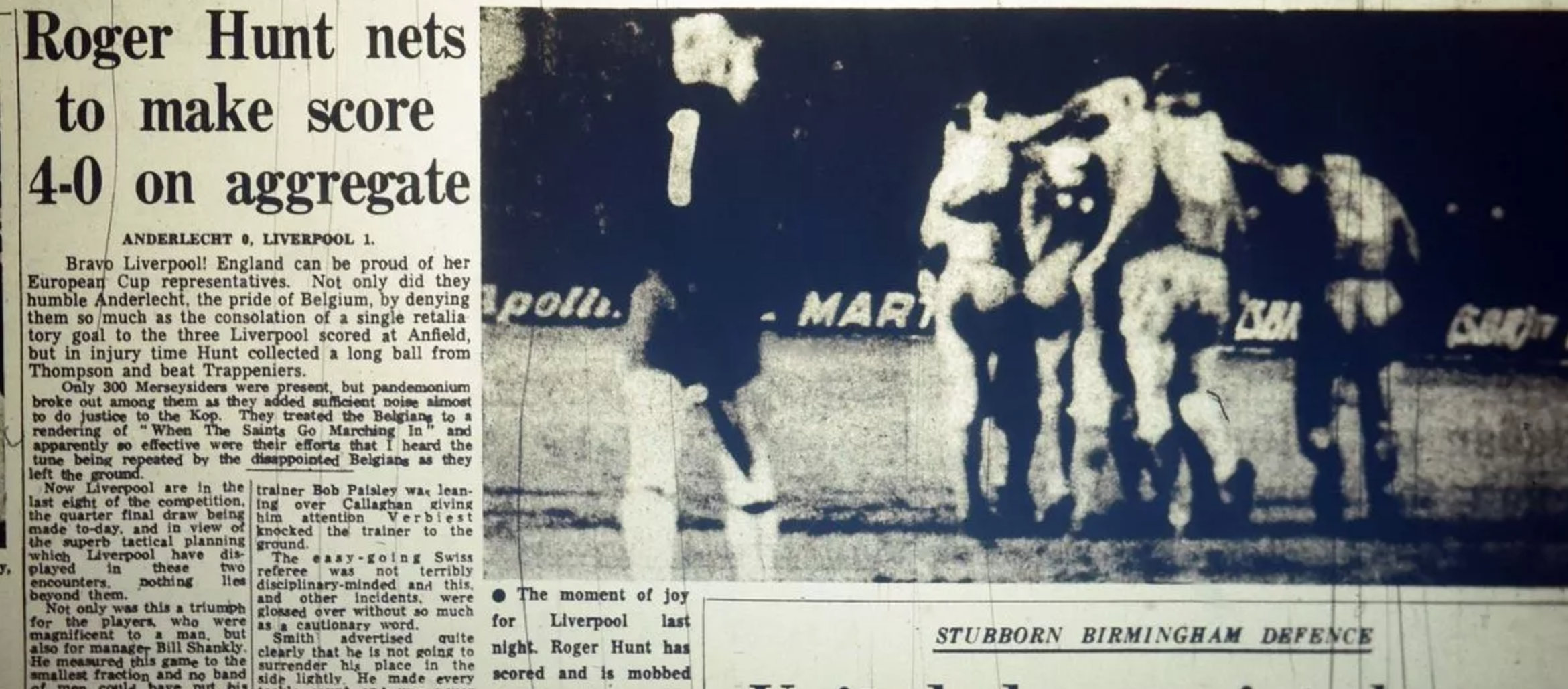 Of course they won – Roger Hunt claiming the significance of becoming the first Liverpool player to score at Anfield in an all red strip, just as he had at the Heysel Stadium in December.