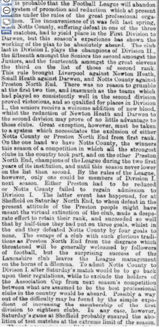 All members of the Football Association had been able to enter the FA Cup competition since 1871, but commentators found it hard to accept that a club which won the FA cup should not be in the top division. In 1892, West Bromwich Albion even avoided having to be re-elected because they were the cup winners that year. The London-based, influential Morning Advertiser carried the following shortly after the 1894 test matches.