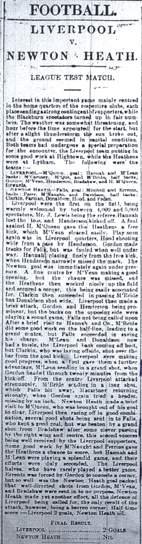 Liverpool Echo report on Liverpool - Newton Heath (future Manchester United) in April 1894.