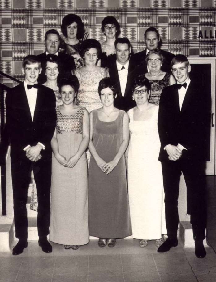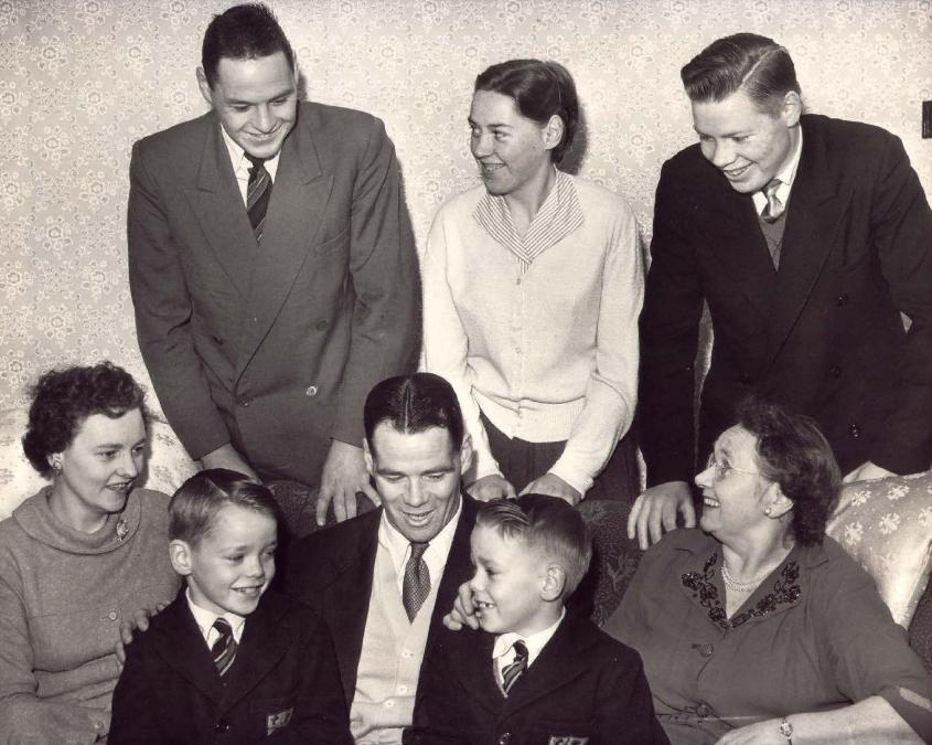Billy with his closest ones. Billy has his and Phyllis' twins, David and Malcolm, on his knees. His mother by his side. Above them are Alistair and twins Rena and George.