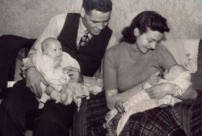 Billy's and Phyllis' twins, David and Malcolm, newborn